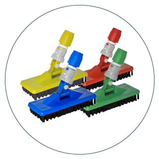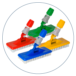 Fabricadas em Polietileno ultra resistente, estes equipamentos foram desenvolvidos para limpeza pesada em locais com acabamentos rústicos, tais como pedras, pisos irregulares, limpeza de rejuntes, bordas de piscina, e outros locais onde as fibras não têm eficácia.